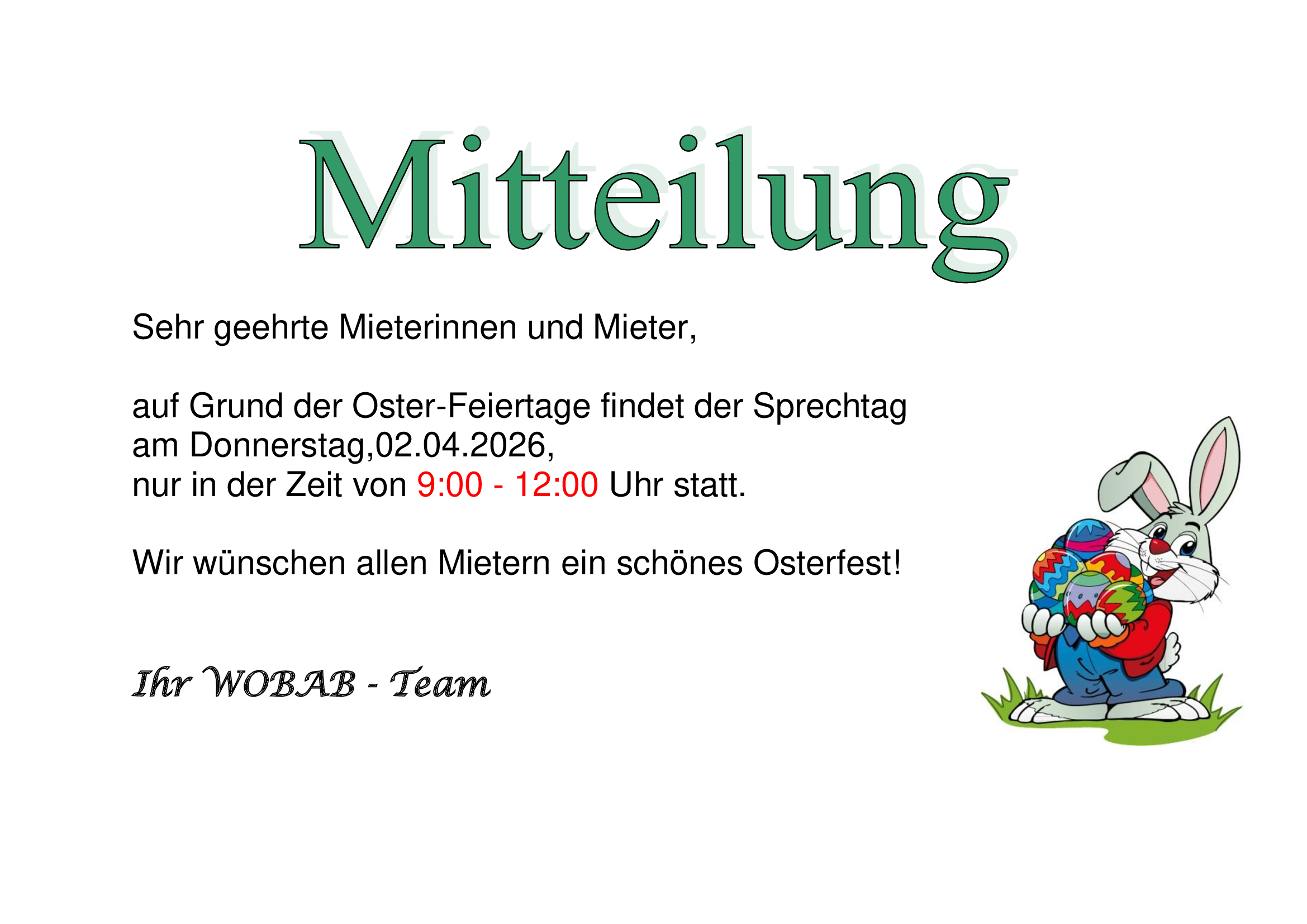 Donnerstag: 09:00 - 12:00 / 13:00 - 15:30 Uhr